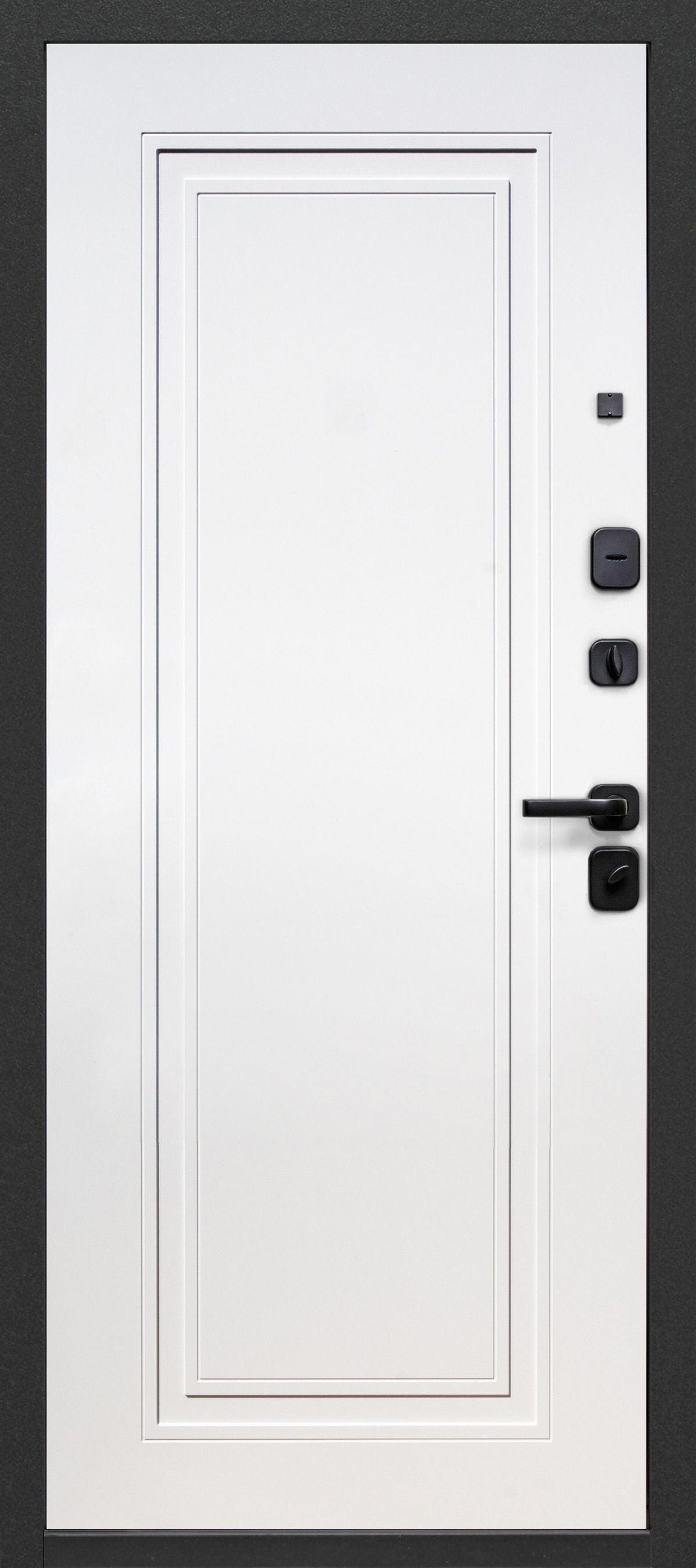 Отделка снаружи: МДФ 8 мм, покрытие PVC «Графит сатин» со вставкой из нержавеющей стали