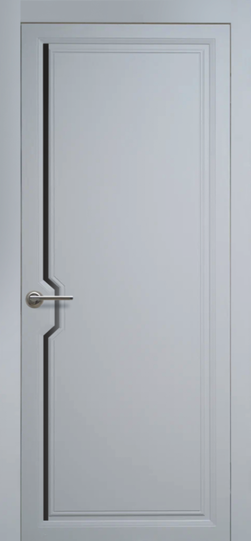 Популярная окрашенная дверь с матовым стеклом около ручки.