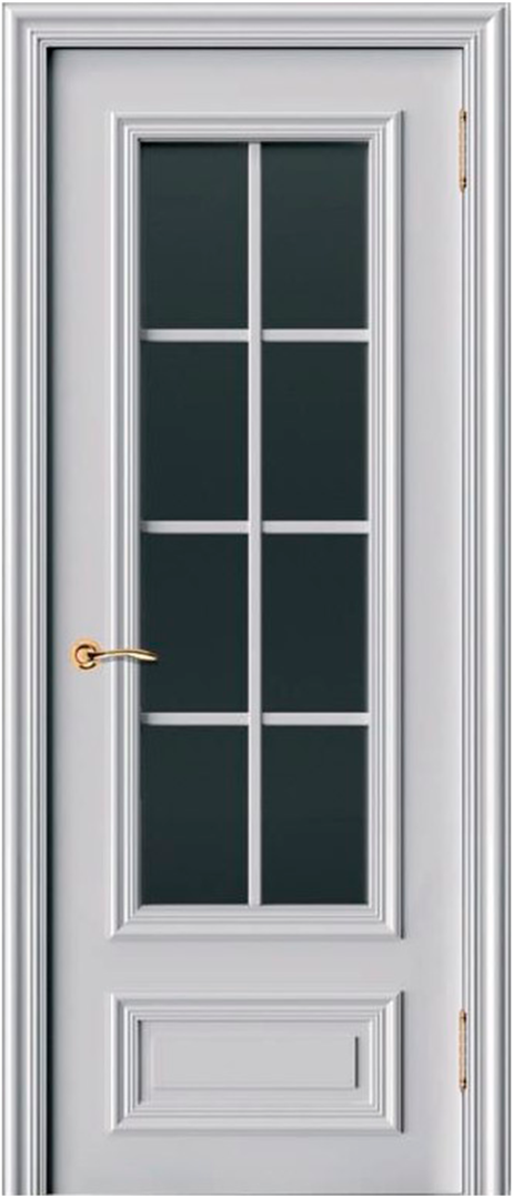Классическая окрашенная и остекленная дверь с объемными багетами и решеткой.