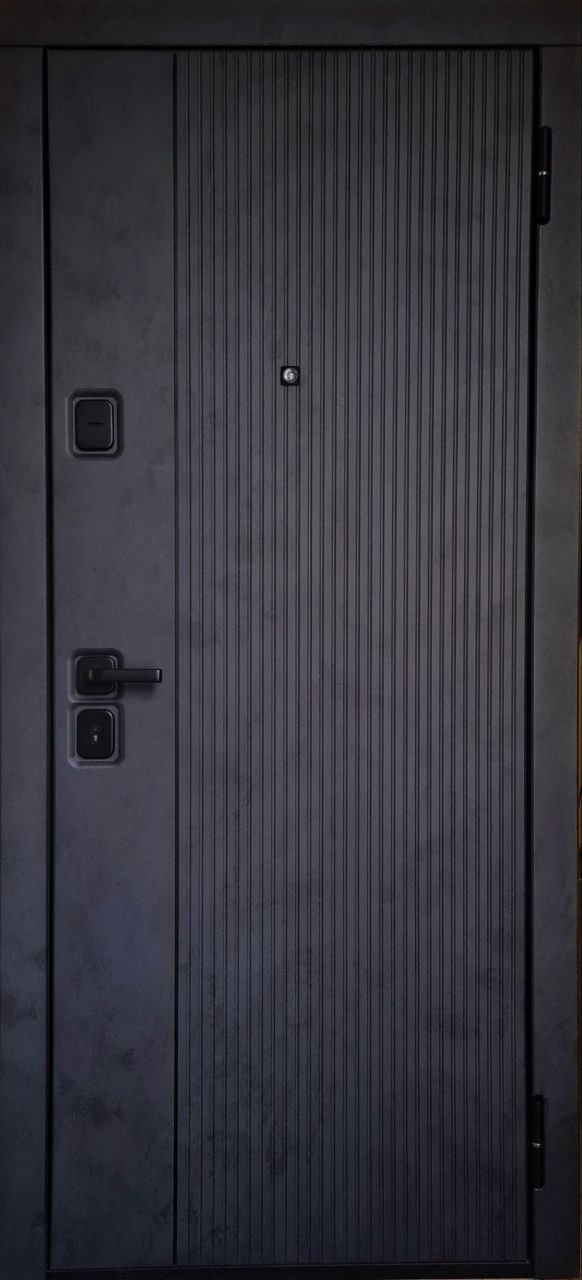 Отделка снаружи: МДФ 10 мм, покрытие PVC: бетон графит (MI35) + декор. черный молдинг