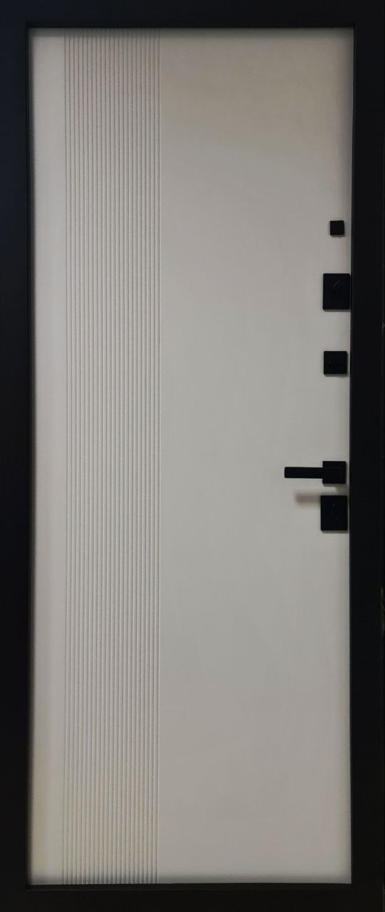 Отделка внутри: МДФ 10 мм, покрытие PVC: шагрень белая197А + вертикальный декор. черный молдинг